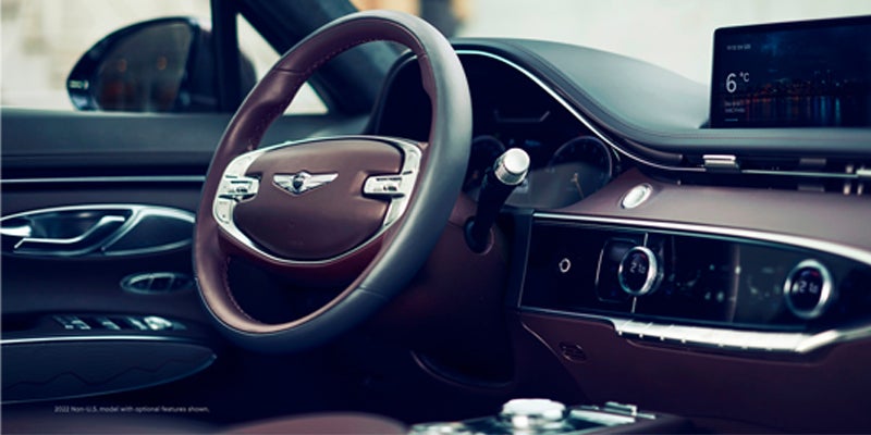 With a heavy focus on the driver, GV70’s quick reactions and immense power help you charge forward, thanks to a standard class-leading 300-hp engine, or the available 375-hp twin-turbo V6 engine.